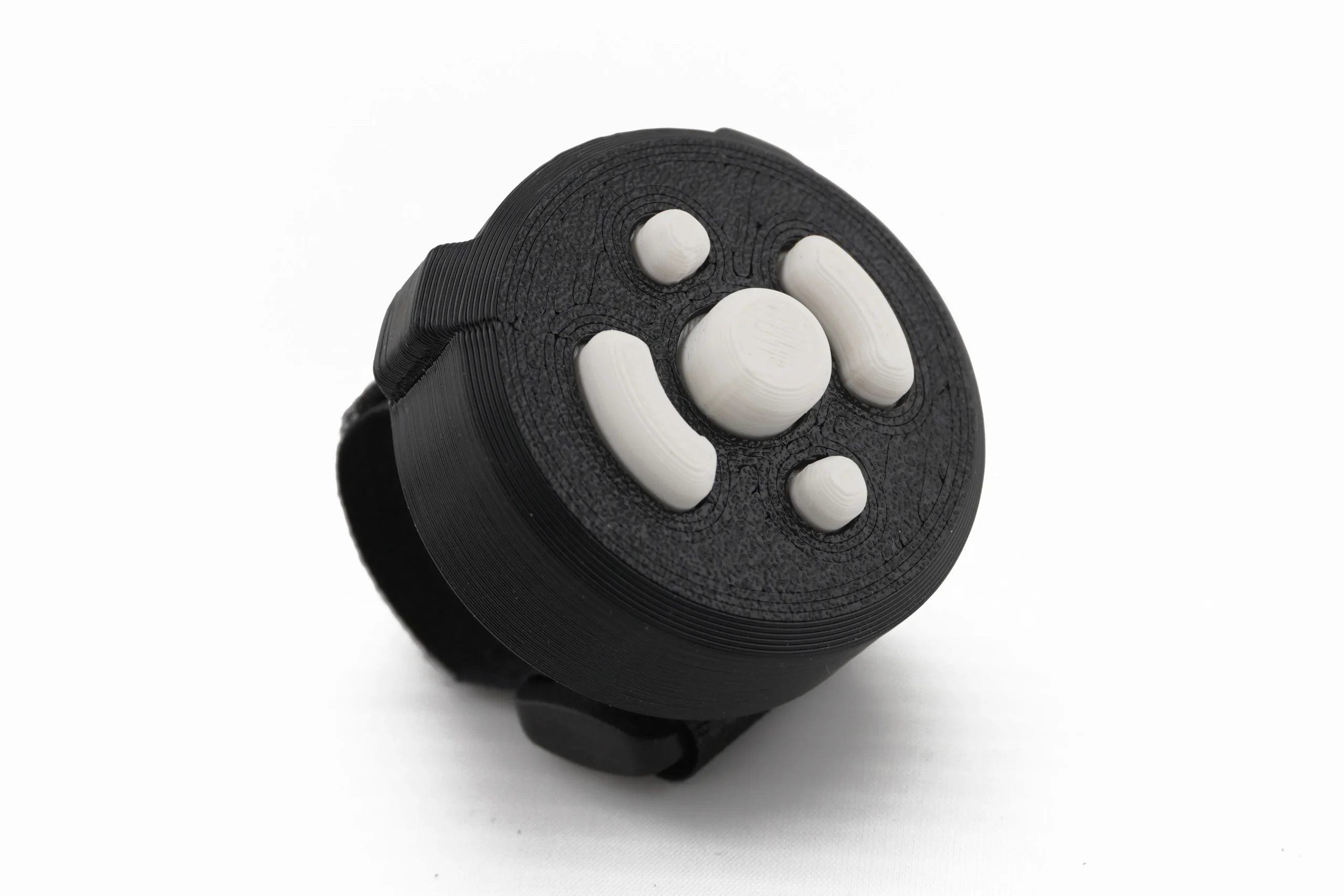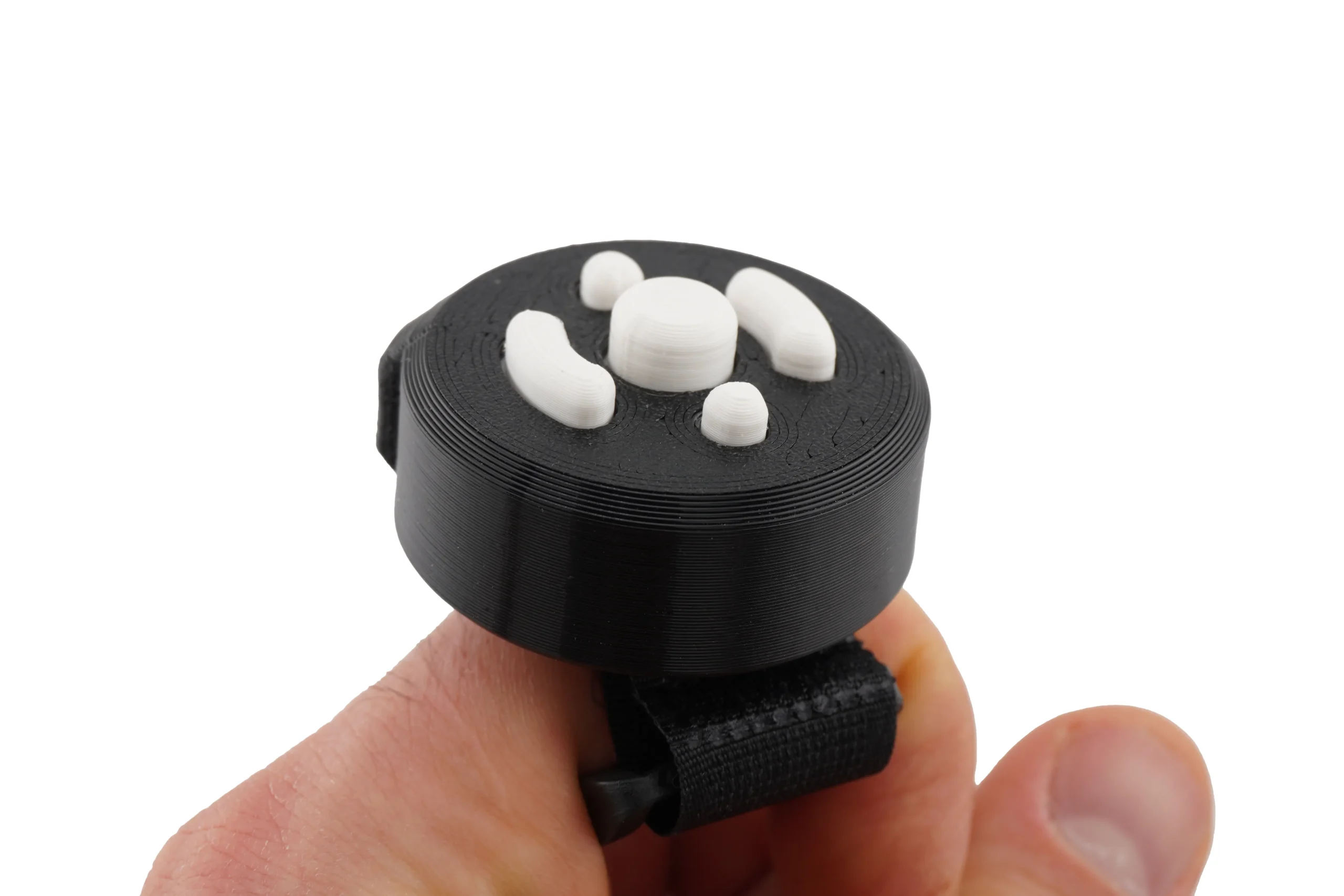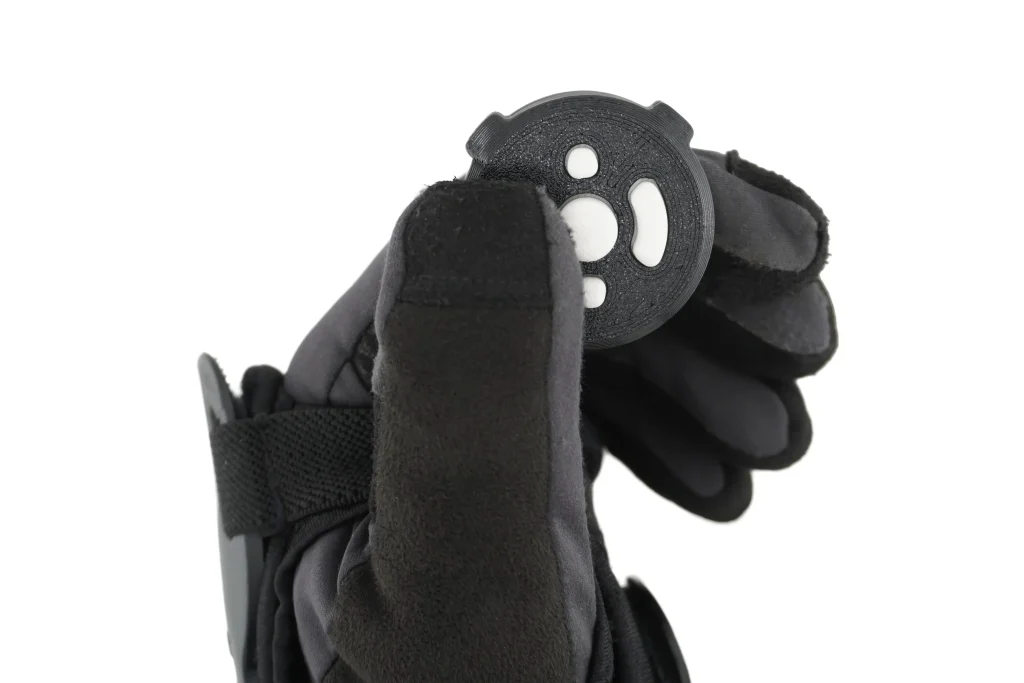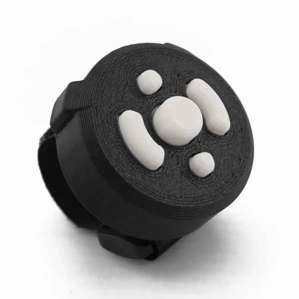 Five distinct button shapes designed for tactile identification – you can tell which button is which by touch alone, even with thick winter gloves. The buttons are large enough to press reliably with gloved fingers and spaced to prevent accidental presses.